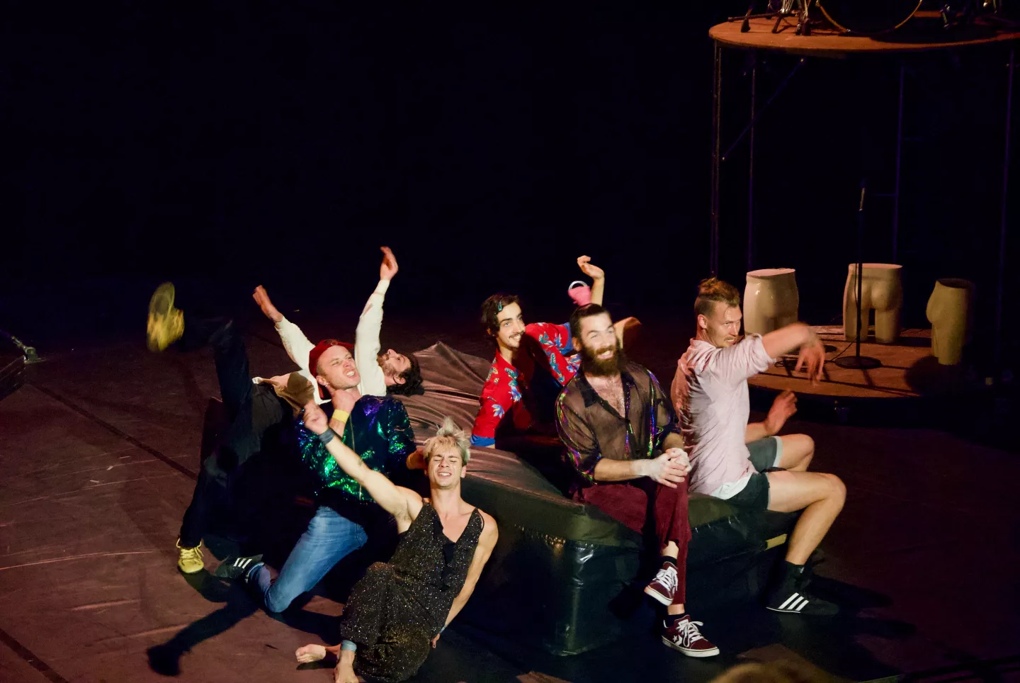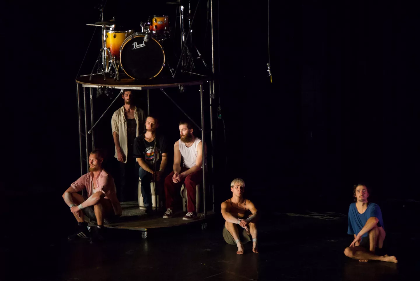 Mise en scène Sophia Perez / Texte-interprètes Rémi Auzanneau, Hernan Elencwajg, Johannes Holm Veje, Tanguy Pelayo, Baptiste Petit, Martin Richard / Chorégraphie Karine Noël / Création musicale, régie son Colombine Jacquemont / Création lumière, régie générale Vincent Van Tilbeurgh / Régie lumière Victor Munoz.