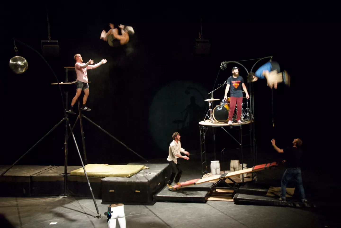 Desiderata, c’est d’abord six hommes acrobates, une bascule et un cadre coréen, mais aussi de la musique live et des récits de vie. À plus de sept mètres de haut, les artistes s’élancent, se rattrapent mais aussi s’étreignent et s’enlacent. Sur scène, ils se dévoilent et prennent le risque de montrer toutes les facettes de leur intimité tour à tour drôles, touchantes et parfois honteuses.