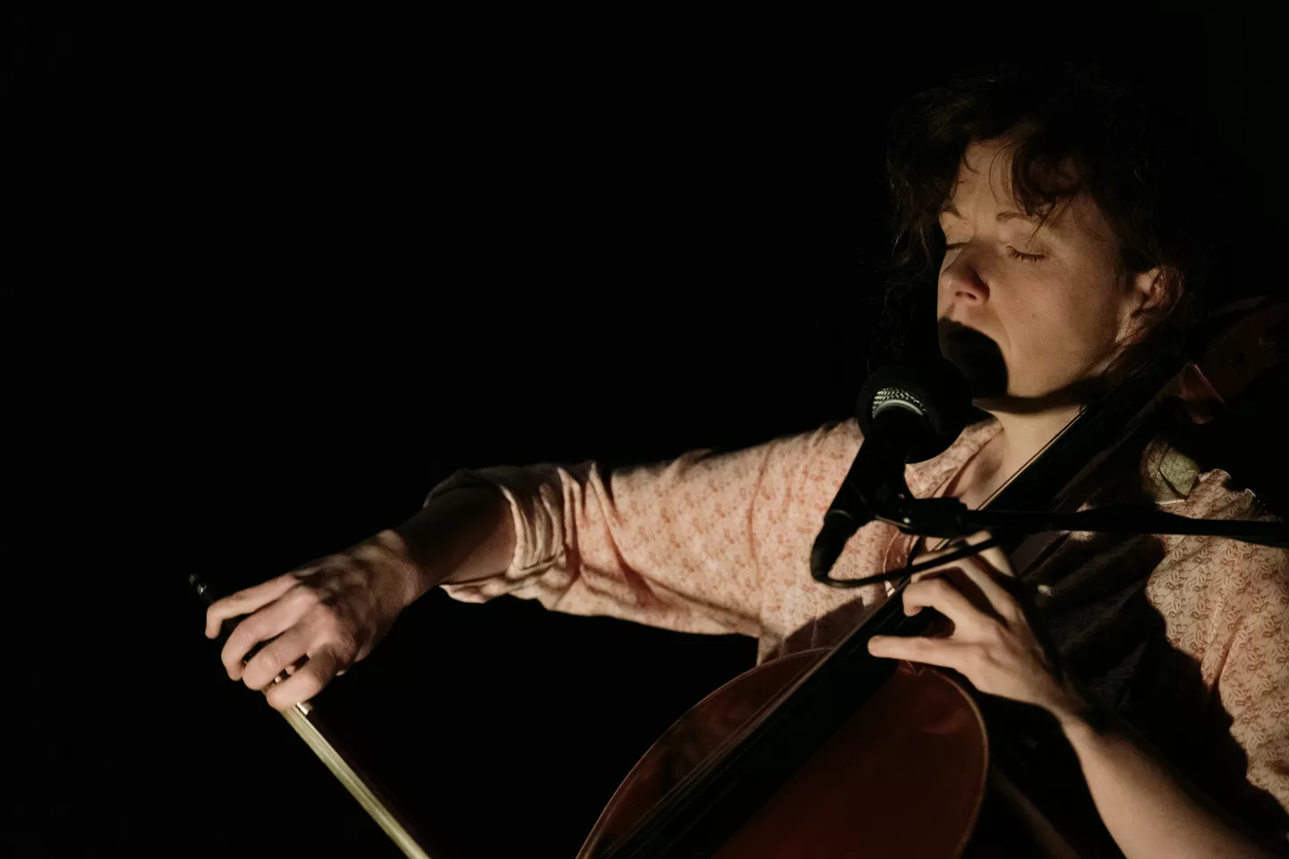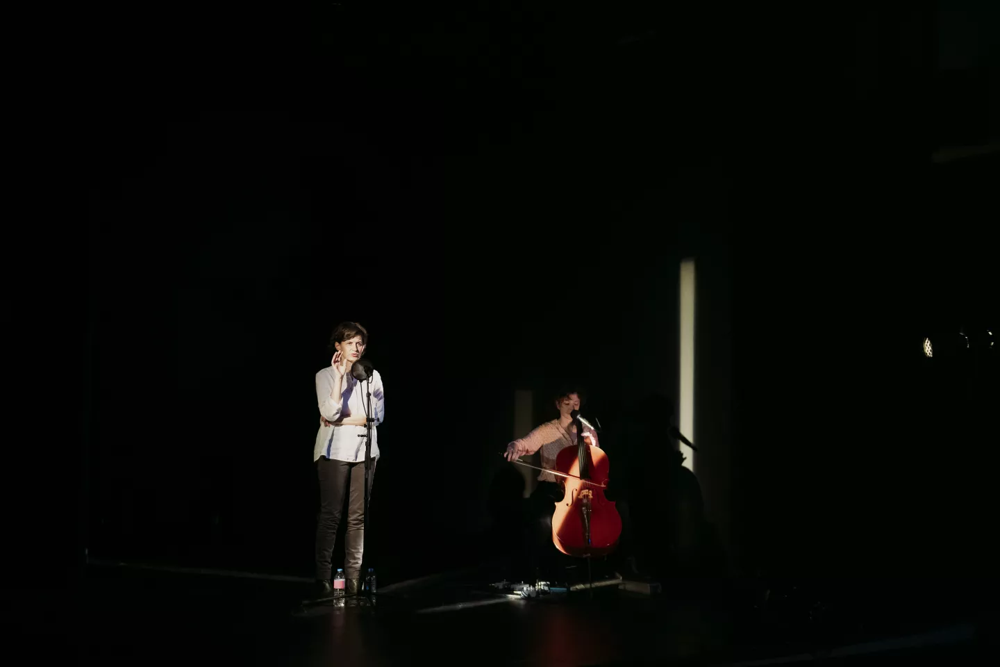 Mise en scène Judith Bordas et Annabelle Brouard /Composition sonore spatialisée Annabelle Brouard /Texte Judith Bordas / Jeu Angélique Clairand / Violoncelle Aëla Gourvennec / Lumières Quentin Chambeaud.