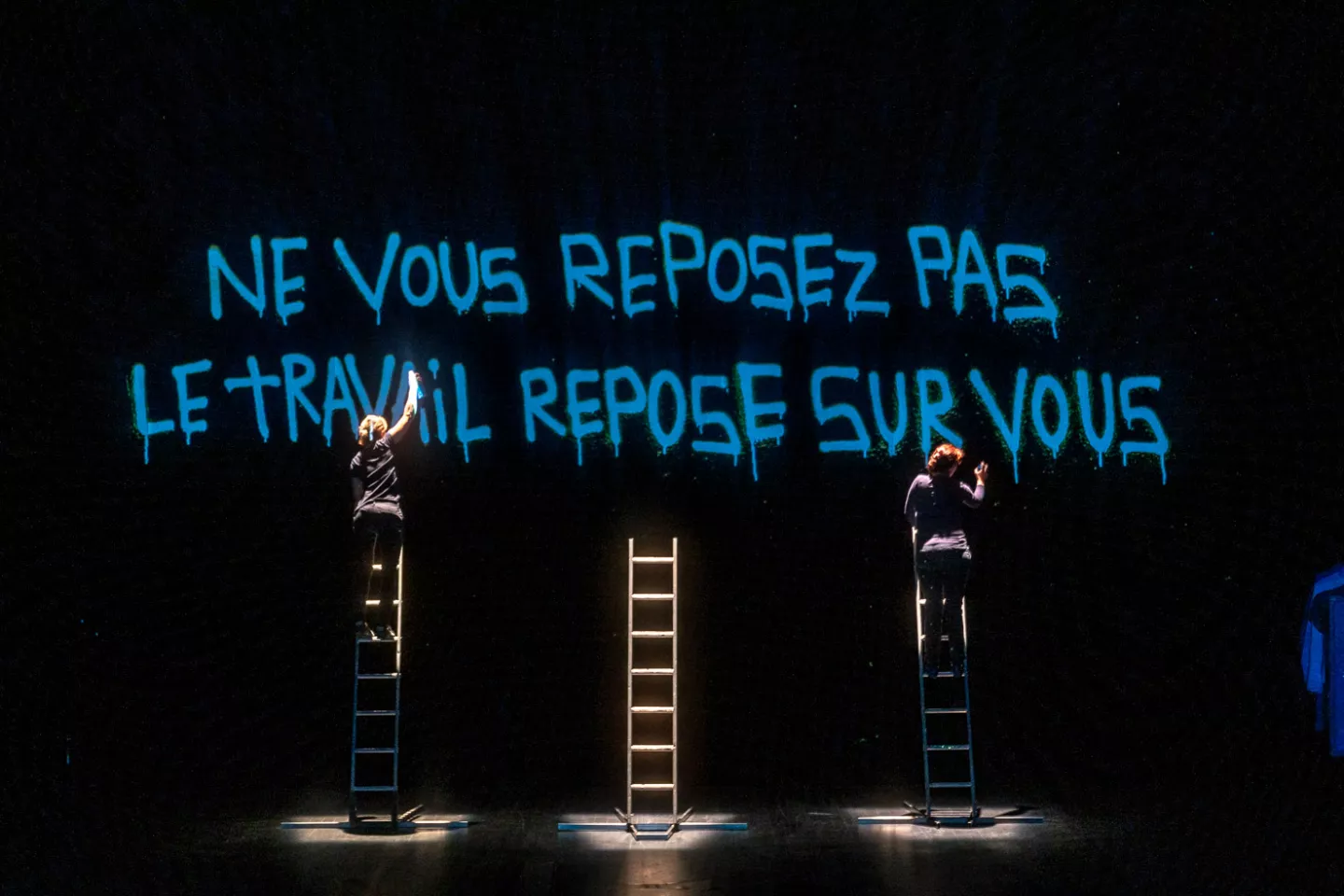 Ce duo de comédiennes nous plonge dans une fable de la violence au travail à travers les histoires de six personnages et autres figures anonymes. Au gré de scènes burlesques et intimistes, librement inspirées des textes de Jacques Prévert, Alexandra Badéa, Marguerite Duras, Magyd Cherfi, Yves Pagès, Laurent Jaubertie ou encore Boris Vian, le Tungstène Théâtre questionne avec poésie et humour notre époque et le système du monde du travail.