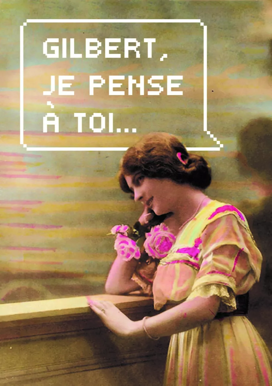 Imaginez, sur une carte postale de votre choix, la correspondance de Simone pour Gilbert.