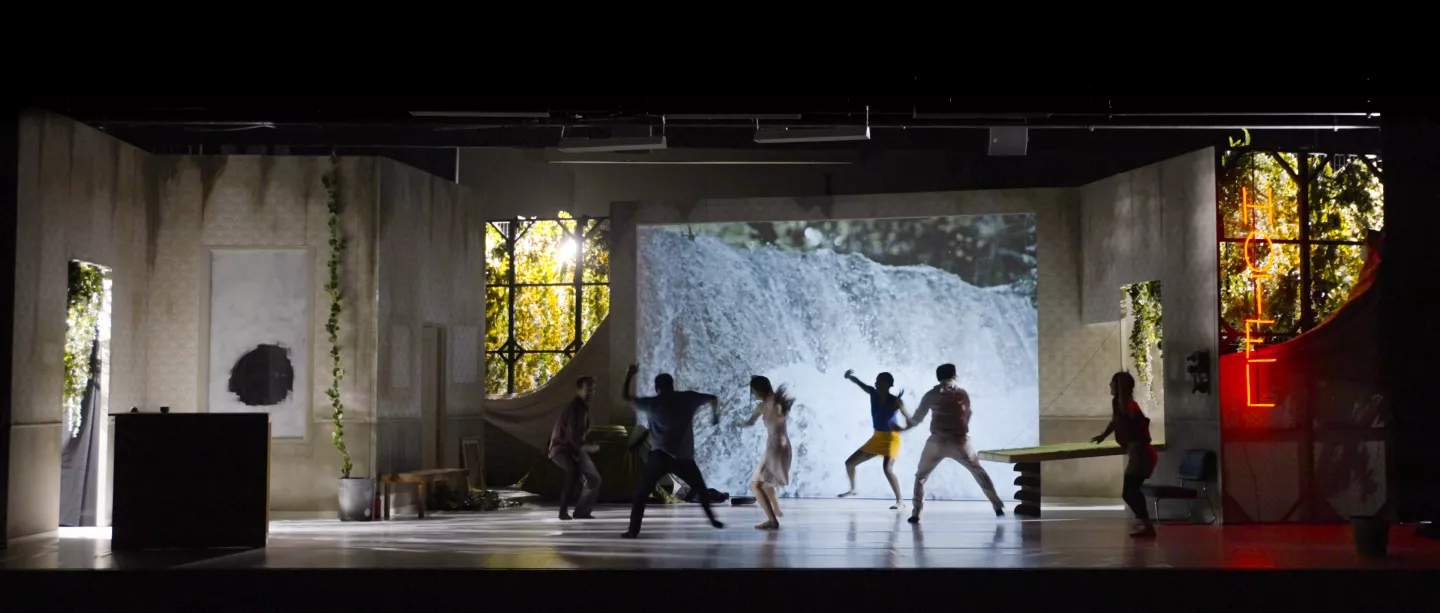 chorégraphie Thomas Guerry / écriture et dramaturgie Thomas Guerry et Bertrand Guerry / danseurs Marion Peuta, Margot Rubio, Rémi Leblanc-Messager, Thomas Guerry / comédiens Fatou Malsert, Bertrand Guerry