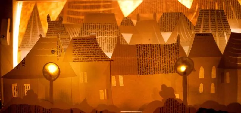 conte, chant, percussions corporelles, création papier et lumière, mise en scène et adaptation Marion Frini / violoncelle, chant, percussions corporelles, composition musicale, mise en scène Anne-Colombe Martin