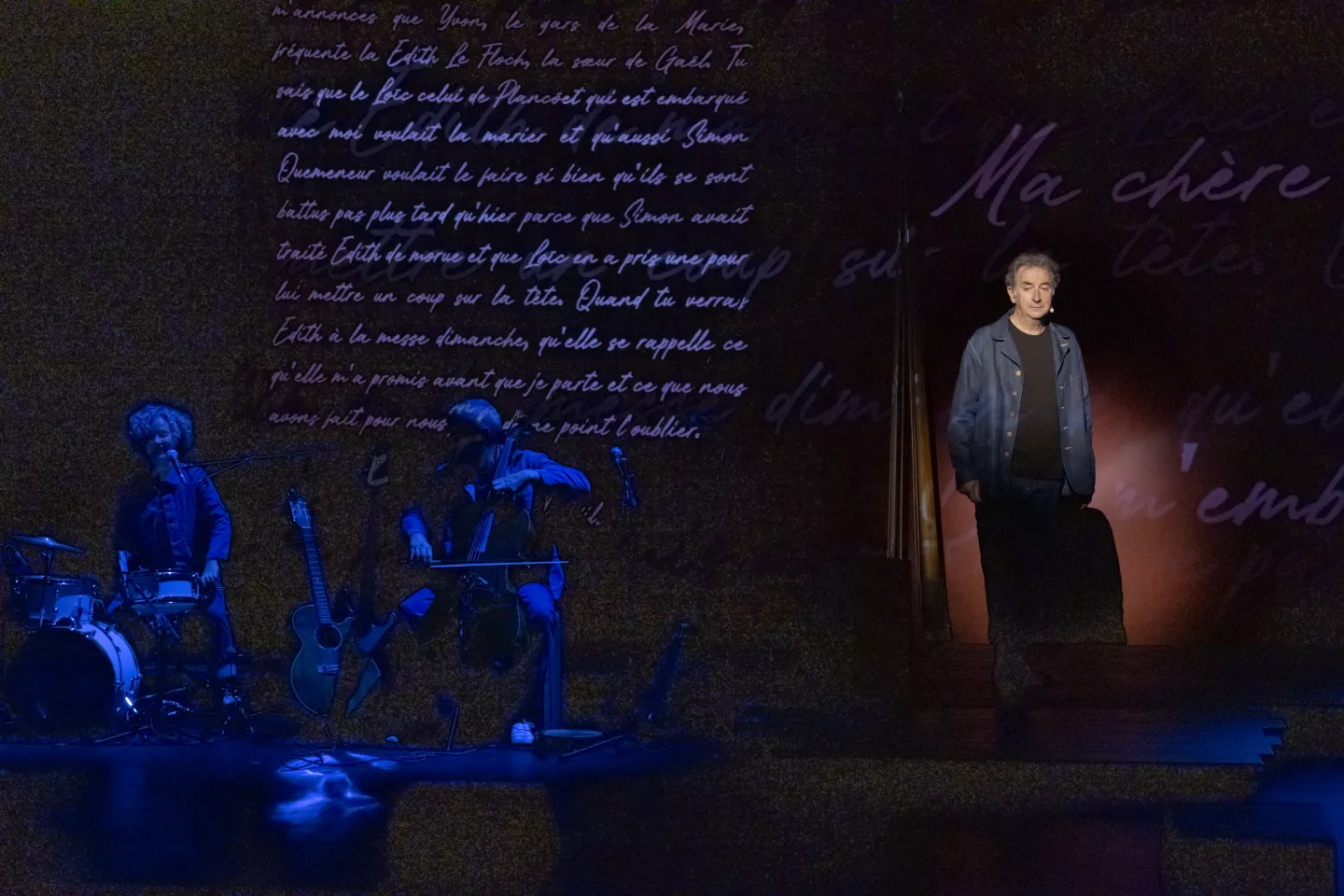 Feuilletant une vieille revue trouvée dans un vide-grenier, François Morel découvre les chansons d’un marin breton, Yves-Marie Le Guilvinec, disparu en mer en 1900. François Morel et ses complices recomposent les chansons disparues et redonne corps et voix aux mots du poète. Ensemble, ils prennent le large et réhabilitent à contre-courant une poésie joyeuse et populaire, dans un hymne à l’ivresse de l’air salé, à la liberté et à la fête.