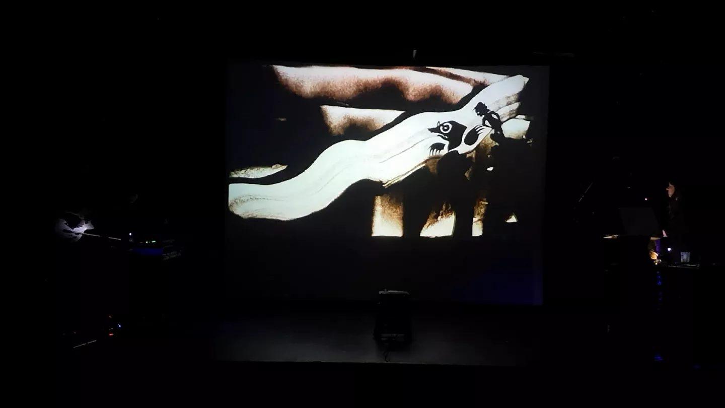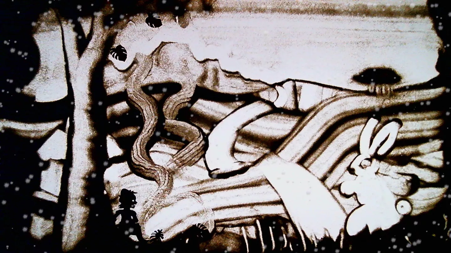 Dans le sable, des images apparaissent, disparaissent, s’enroulent autour d’une musique…