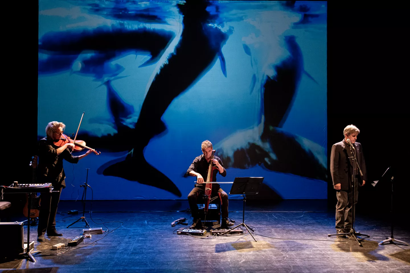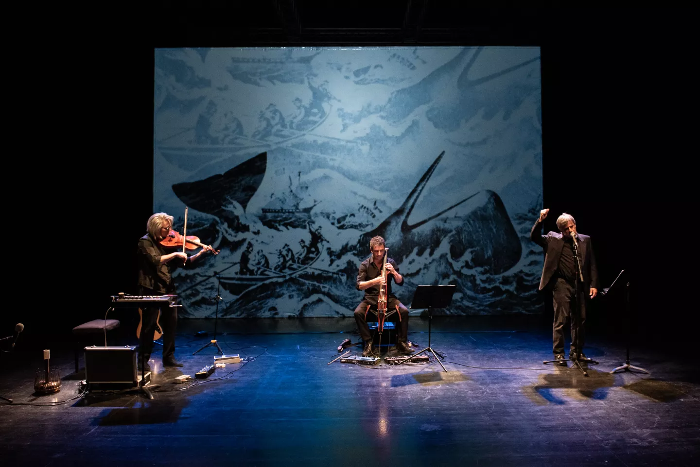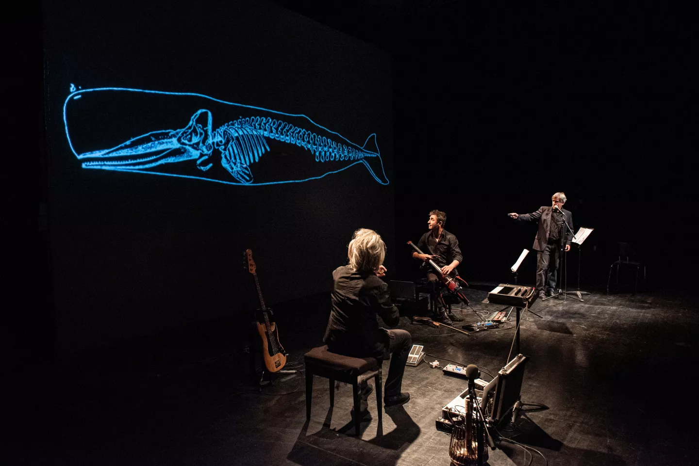 Spectacle immersif, fait d’images, de musiques et d’idées, librement inspiré du livre de François Sarano Le Retour de Moby Dick, ou ce que les cachalots nous enseignent sur les océans et les hommes (Actes Sud). On plonge dans l’océan avec les musiciens et la voix du conteur, à la rencontre du monde méconnu et captivant des cachalots.